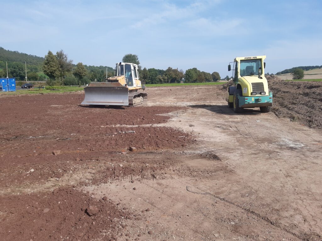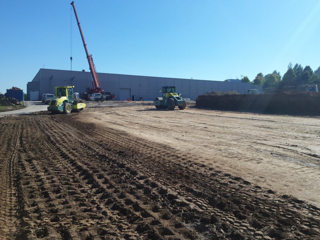 Werkszufahrten, Medienleitungen, Entwässerung und Geländeausbau.