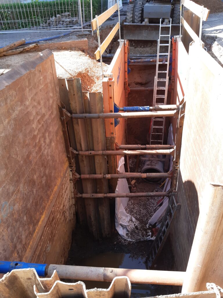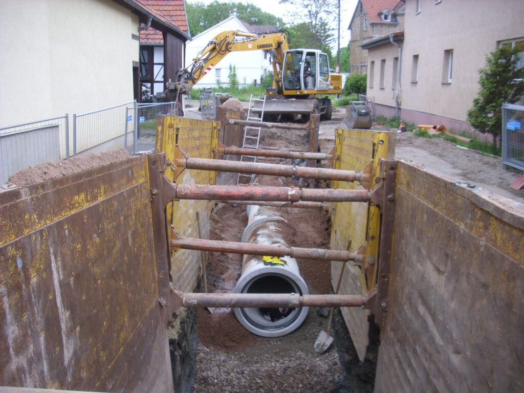 Bau und Sanierung von Gas-, Wasser-, Abwasser- und Strominfrastruktur.