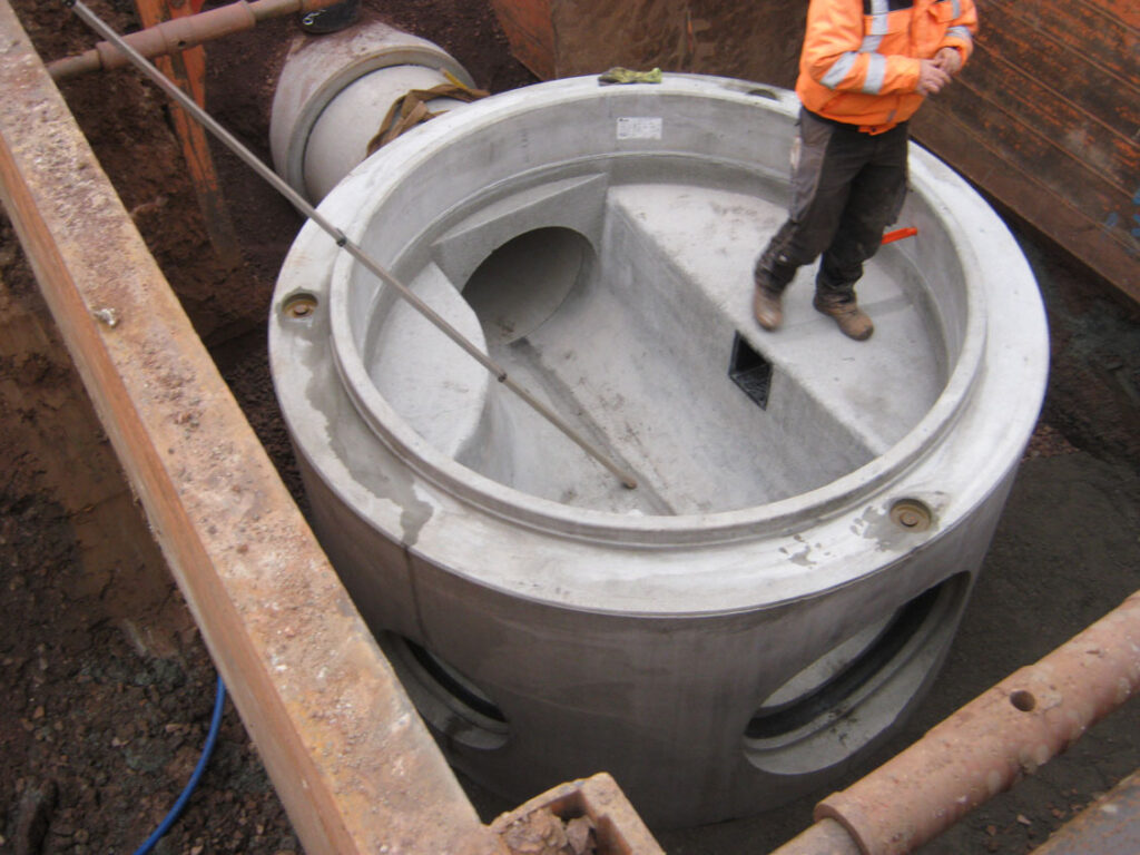 Schmutz-, Regen- und Mischwasserkanäle, Rückhaltebecken und Entwässerungsrinnen.